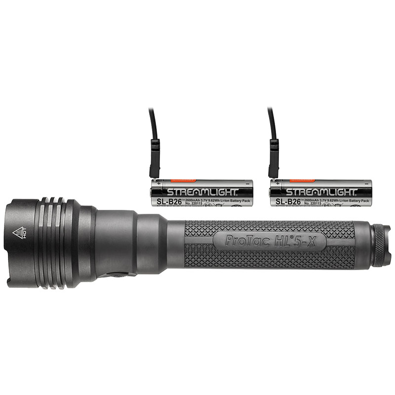 - Wielopaliwowy: Wykorzystuje (2) akumulatory litowo-jonowe USB z ochroną Streamlight SL-B26®; obsługuje również (4) baterie litowe CR123A